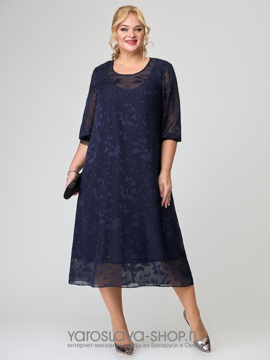 Нарядное платье из шифона А-силуэта синего цвета