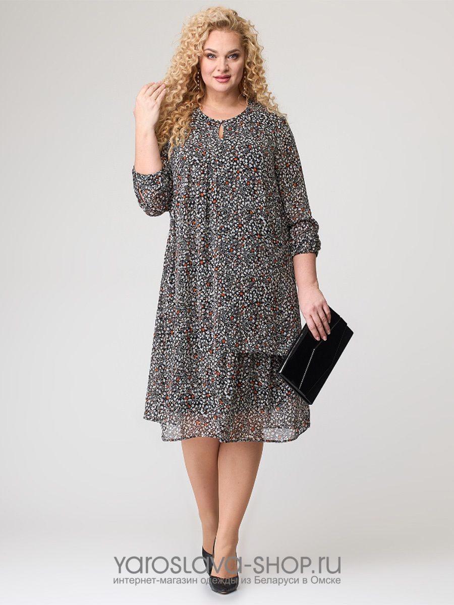 Нарядное платье из шифоновой ткани, с цветочным принтом, свободного силуэта, на подкладке.