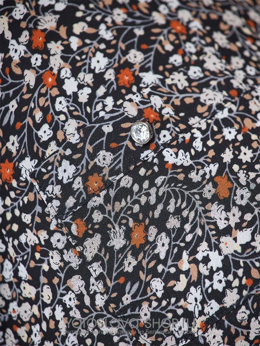 По переду отлетные, ассиметричные планки с легкой сборкой, накладной карман с пуговицей.