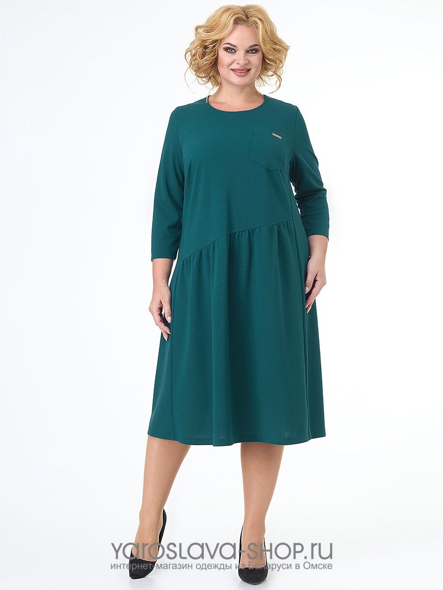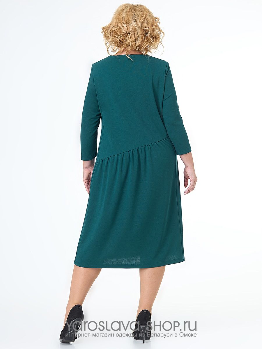 Платье темно-бирюзовое со сборкой