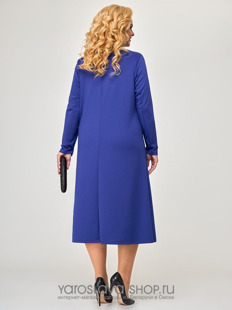Нарядное платье василькового цвета с атласной лентой