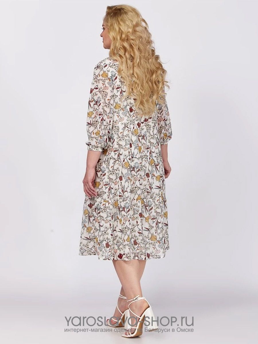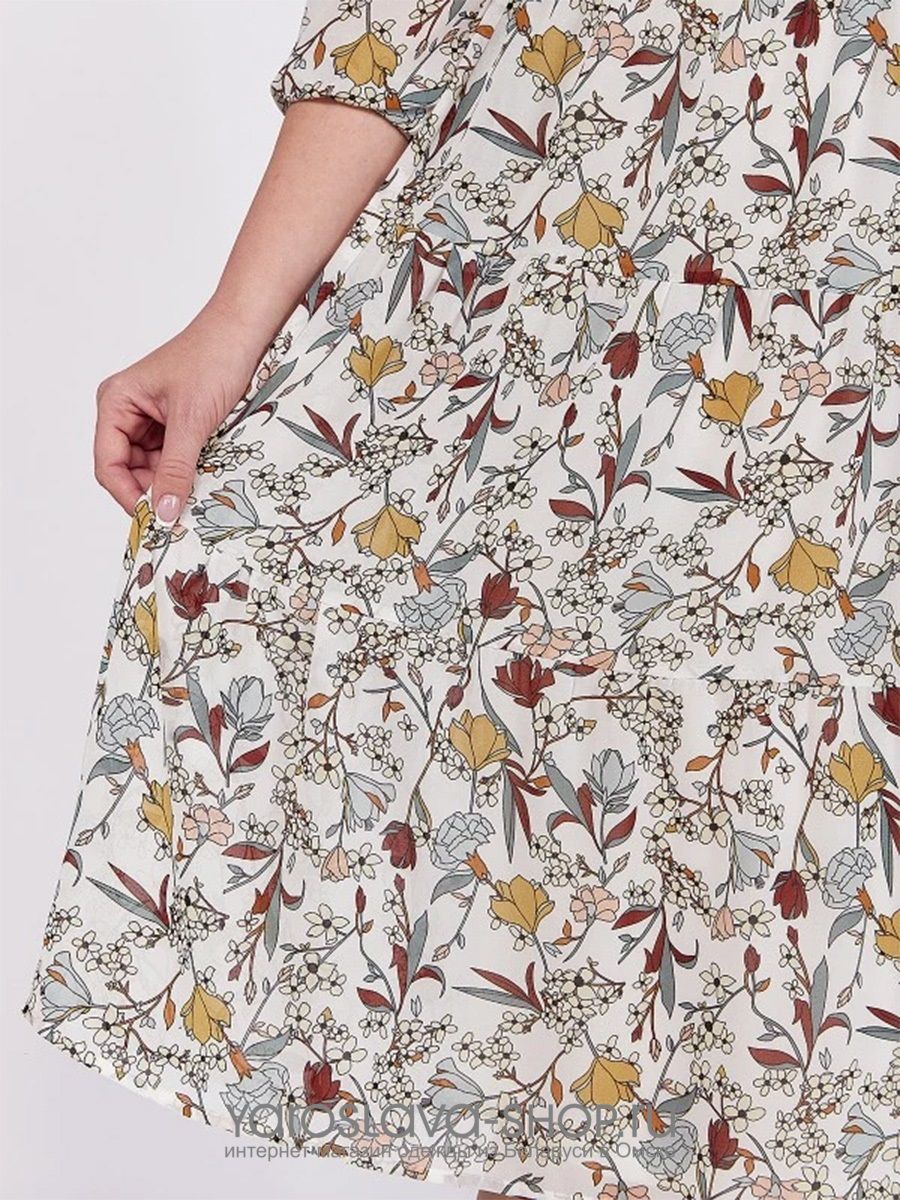 Платье из шифона молочного цвета с растительным орнаментом