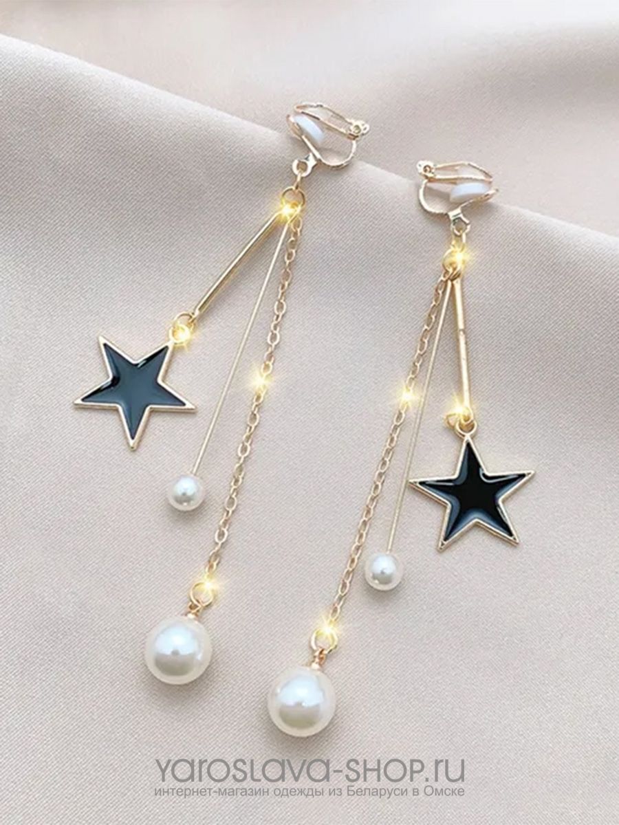 Клипсы с подвесками звездочки и жемчуга