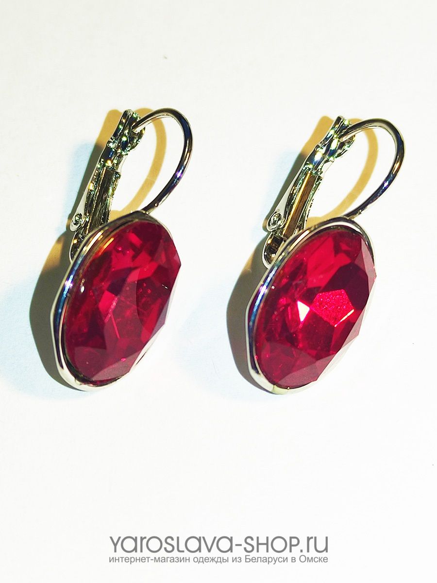 Серьги на крючке с зажимом, циркон высокого качества, камень овальной формы красного оттенка.
