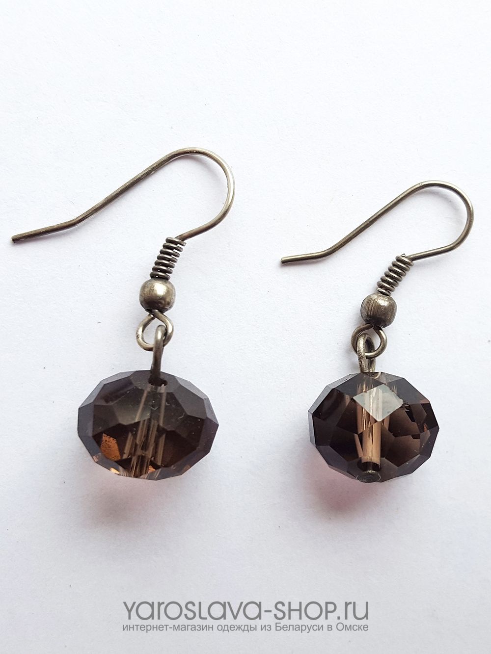 Серьги на крючке из хрусталя. Каждая серьга состоит из одной граненой бусины слегка приплюснутой.