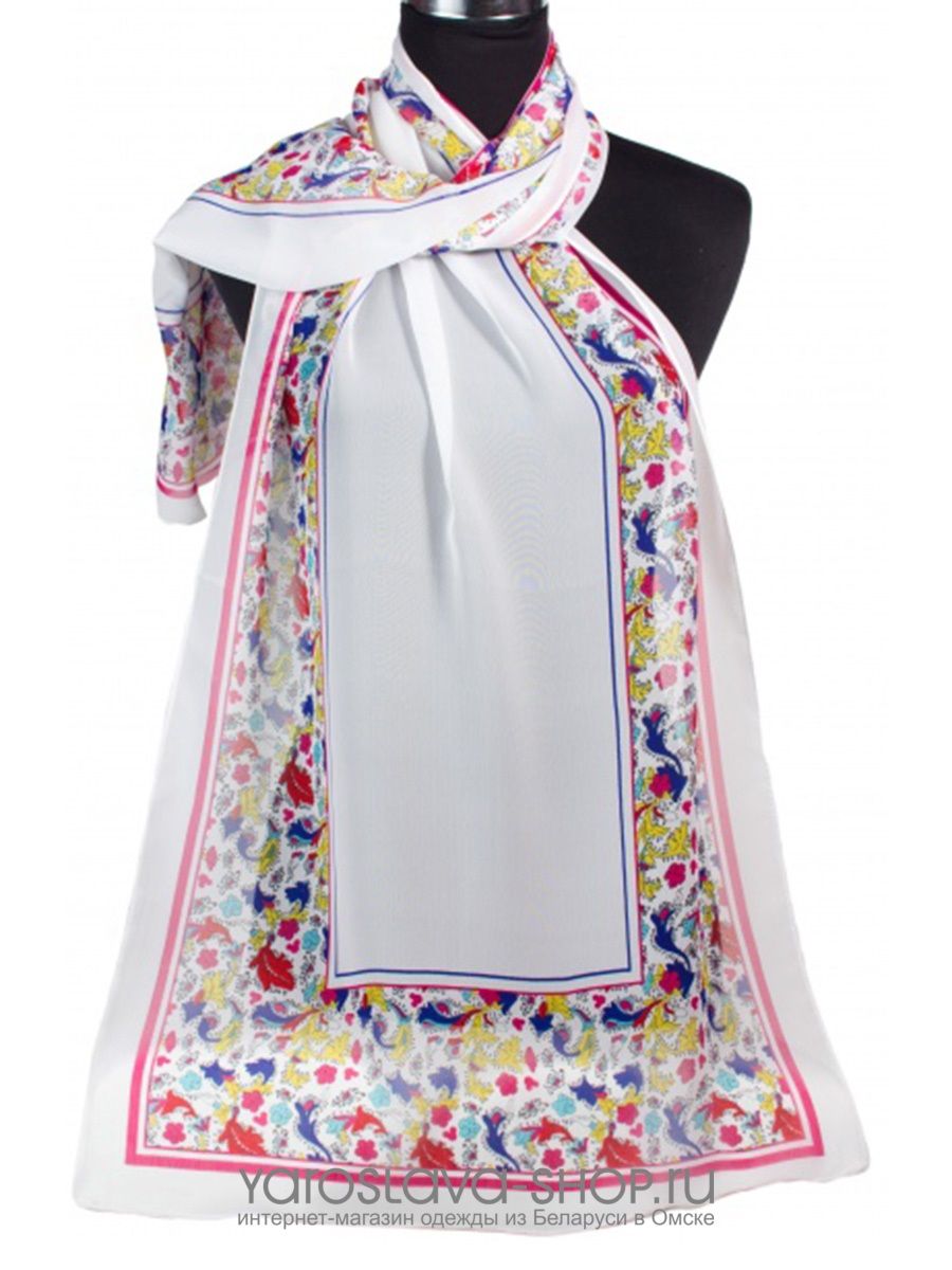 Шифоновый шарф белый с цветочной каймой